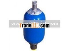 The ABVE bottle type accumulators consist of a forged steel body, a bladder, and a charging valve. An oil side orifice is fitted with a poppet valve which prevents extrusion of the inside bladder. Hydro-pneumatic accumulators starting from ABVE10 type are equipped with an air bleed screw used during system start-up. Type of elastomer and inside coating determine allowable working fluids. It is mineral-based hydraulic oil as a standard, but the accumulator can be adopted to work with other fluids. Charging and gauging can be done with VGL 4 or CGLU 4F.